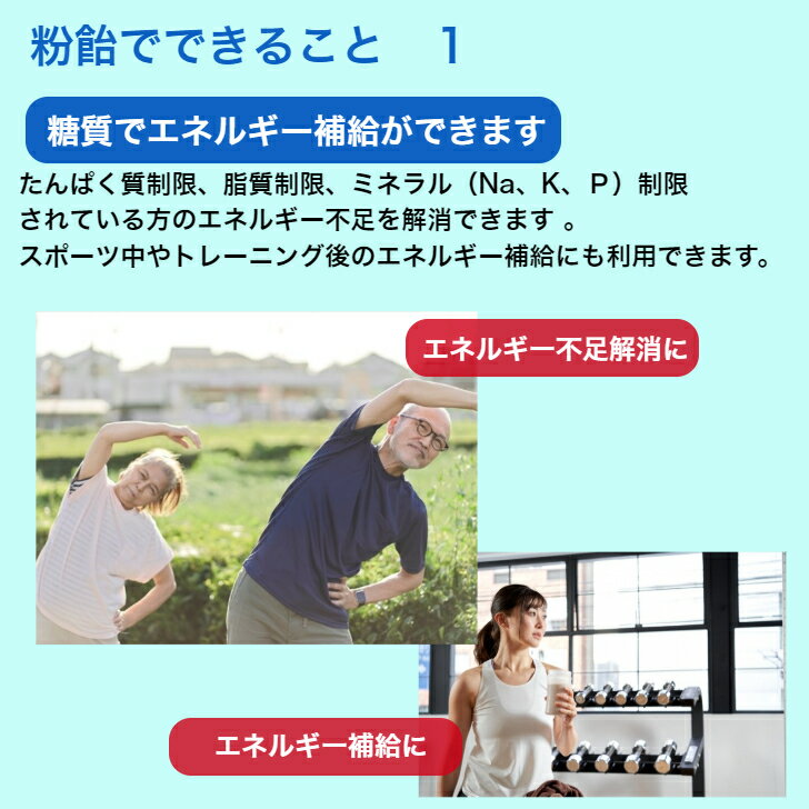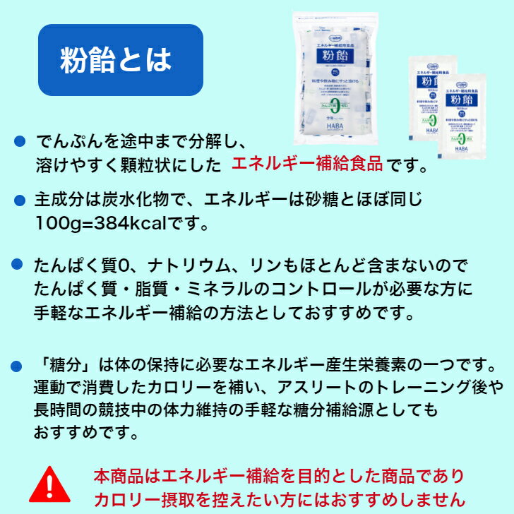 ご注意!! 「粉飴顆粒」はエネルギー補給を目的とした商品であり、カロリー摂取を控えたい方にはおすすめしません。